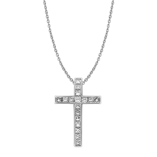 A simple, modern straight line with a diamond design, this cross necklace can be easily worn with
